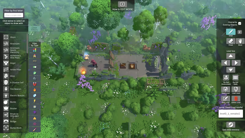 Solve spatial puzzles where objects interact in surprising and meaningful ways. Use mirrors, magnets, fire, vines, clones, and elemental systems in deeply layered challenges that evolve far beyond traditional box-pushing.