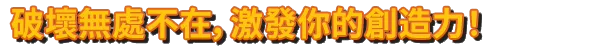在這個世界裡,無窮的可能在每個角落等待著你!無論是堡壘,森林,還是星際飛船,你都可以盡情地施展你的創造力和破壞欲!變大,縮小,扣殺,重擊,世界就是你的破壞遊樂場!