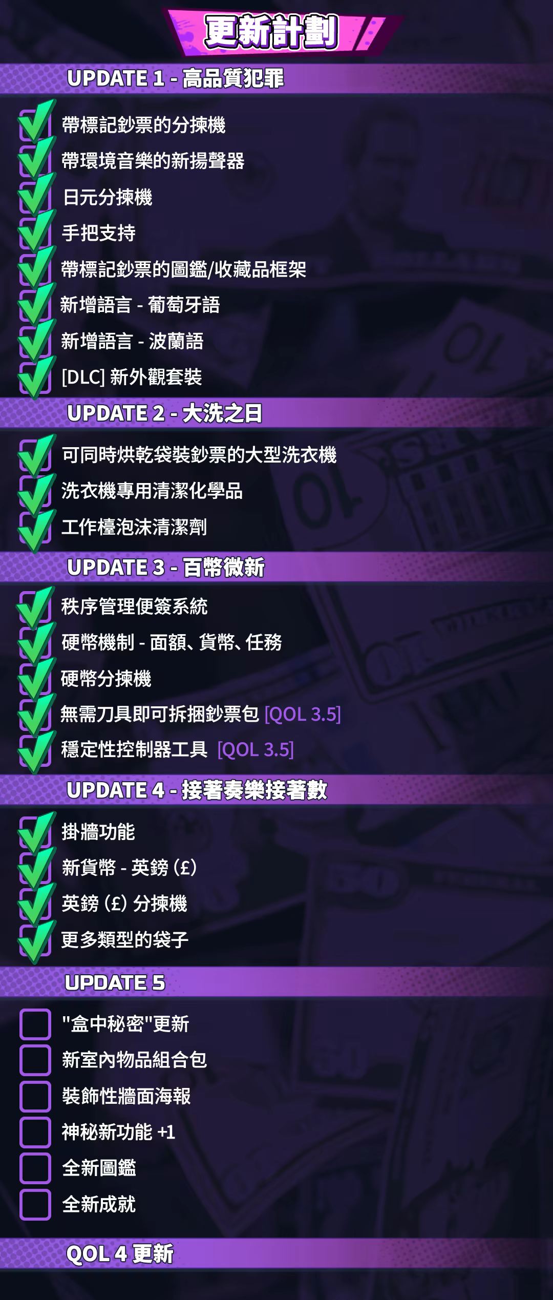 把錢塞進袋子、箱子,甚至床墊,客戶的需求永遠千奇百怪,而你的目標只有一個:更快完成。分揀、打包、交付,一切圍繞效率運轉,你需要不斷優化流程,讓每一筆錢流動得更順暢。升級設備之後,整個操作會變得越來越順手,從手忙腳亂到全面掌控,全都掌握在你手中。當然,少一點還是多一點,從來沒人會真的逐張確認,而你也在這個過程中,慢慢累積屬於自己的好運。