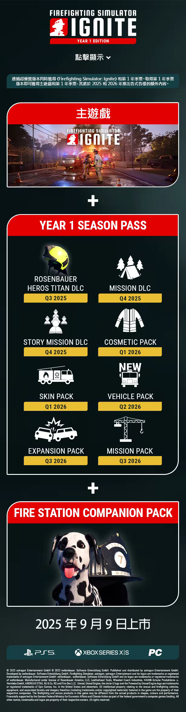一起團結打火。在《Firefighting Simulator: Ignite》面對難以預料的危險、與隊員一起撲滅險惡的火勢並拯救人命。在美國中西部的繁華城市中化身美國消防員,這裡的每場任務都將充分考驗您的技術。可在操作直觀的多人合作模式中與最多 3 名好友一起遊玩或由 NPC 協助控制隊員,體驗絢麗畫質下十萬火急的打火緊迫感。撲滅瞬息萬變的劇烈火勢、高溫和濃煙,皆由 Unreal Engine 5 支援的頂尖物理與圖像系統即時模擬,讓您以前所未有的方式體驗身歷其境的打火過程。