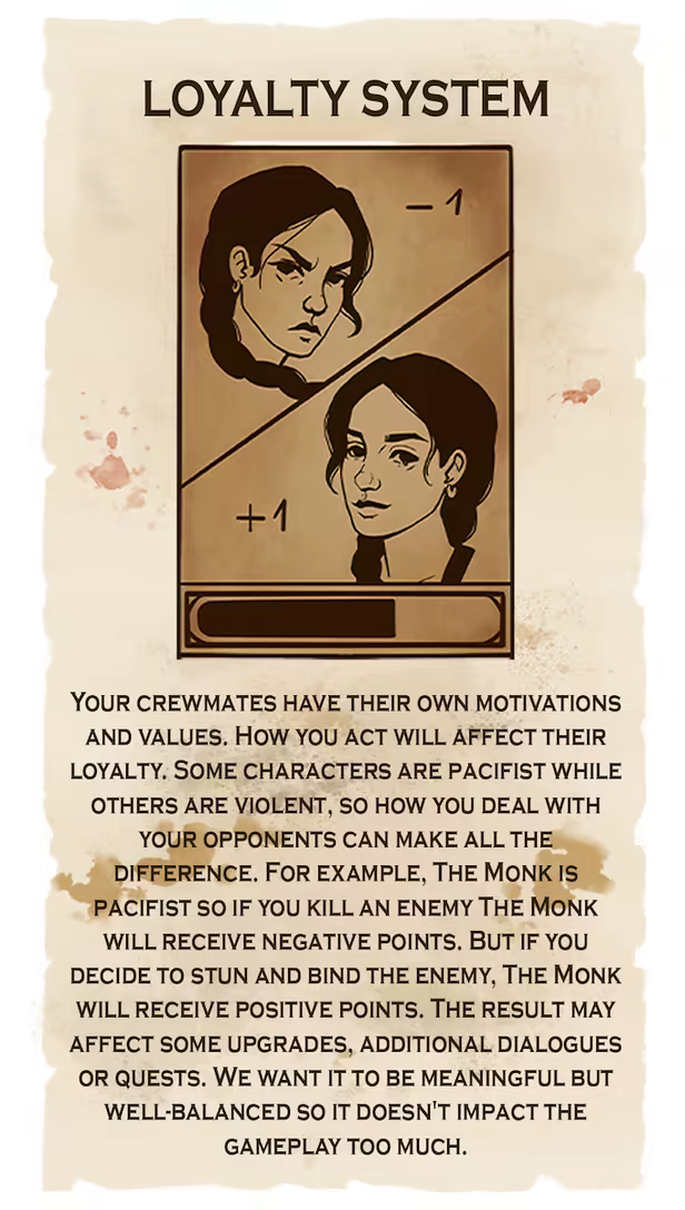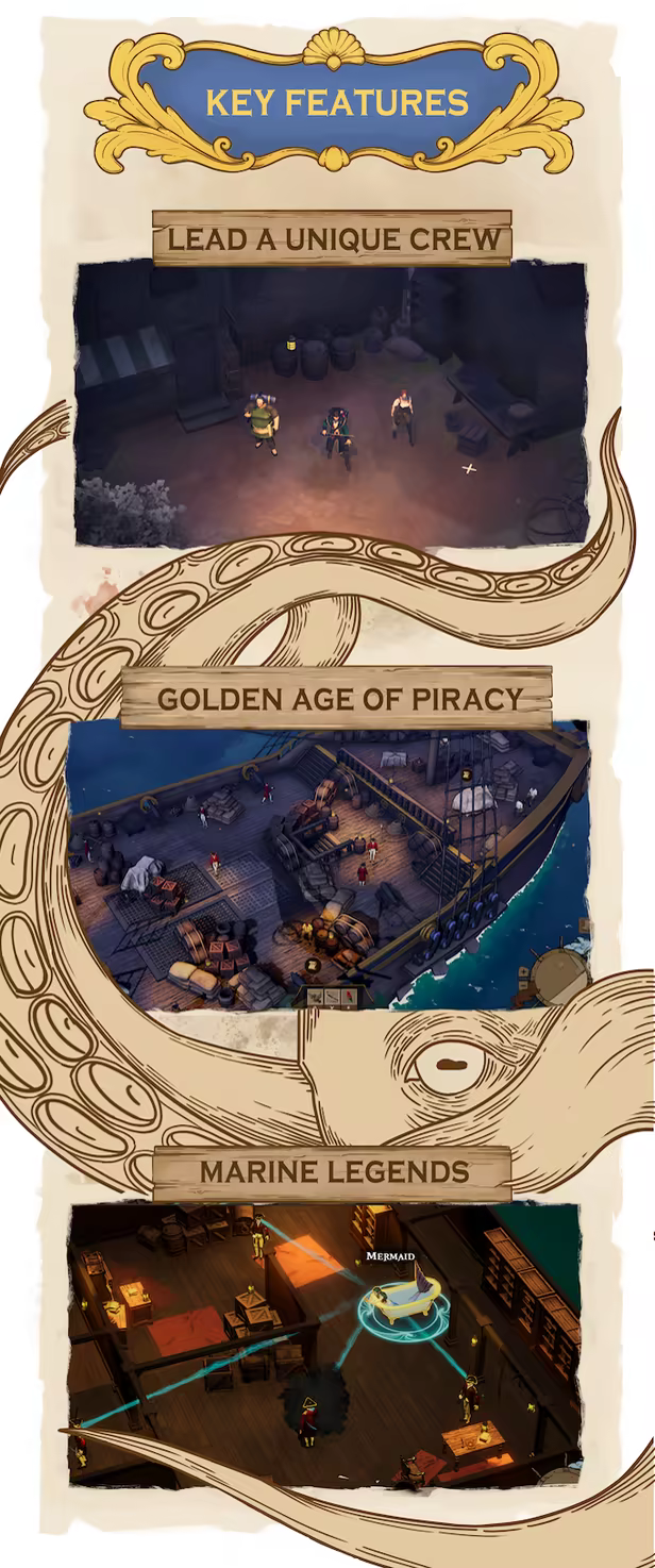 探索一個有抱負的船長和他的船員的陰暗過去。利用各種角色能力成功擊敗你的敵人。做一個安靜而難以捉摸的海盜紳士,或者一個折磨受害者的嗜血殺人犯。不過要注意你的船員,因為你選擇的道路會激發一些人的尊重,而它可能會促使其他人叛變。看看成為真正的海盜船長是什麼感覺!