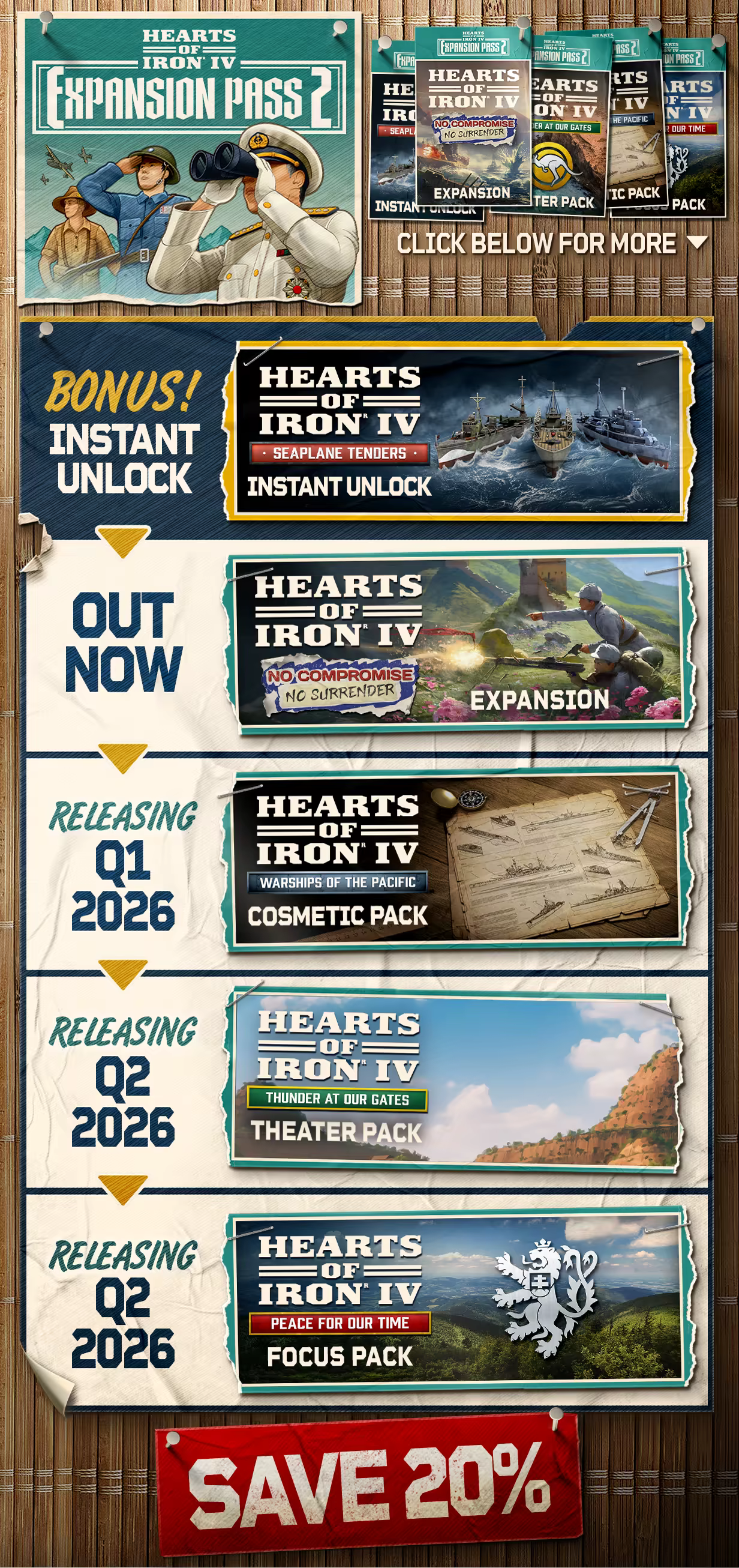 本購買項目包含《Hearts of Iron IV》主遊戲以及四個擴展內容套件: