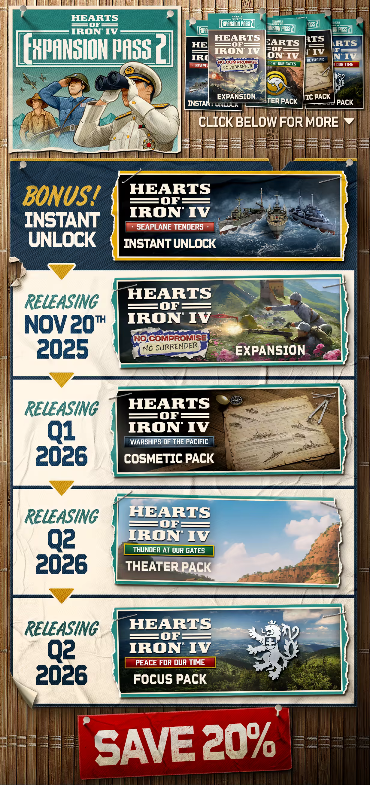 本購買項目包含《Hearts of Iron IV》主遊戲以及三個擴展內容套件: