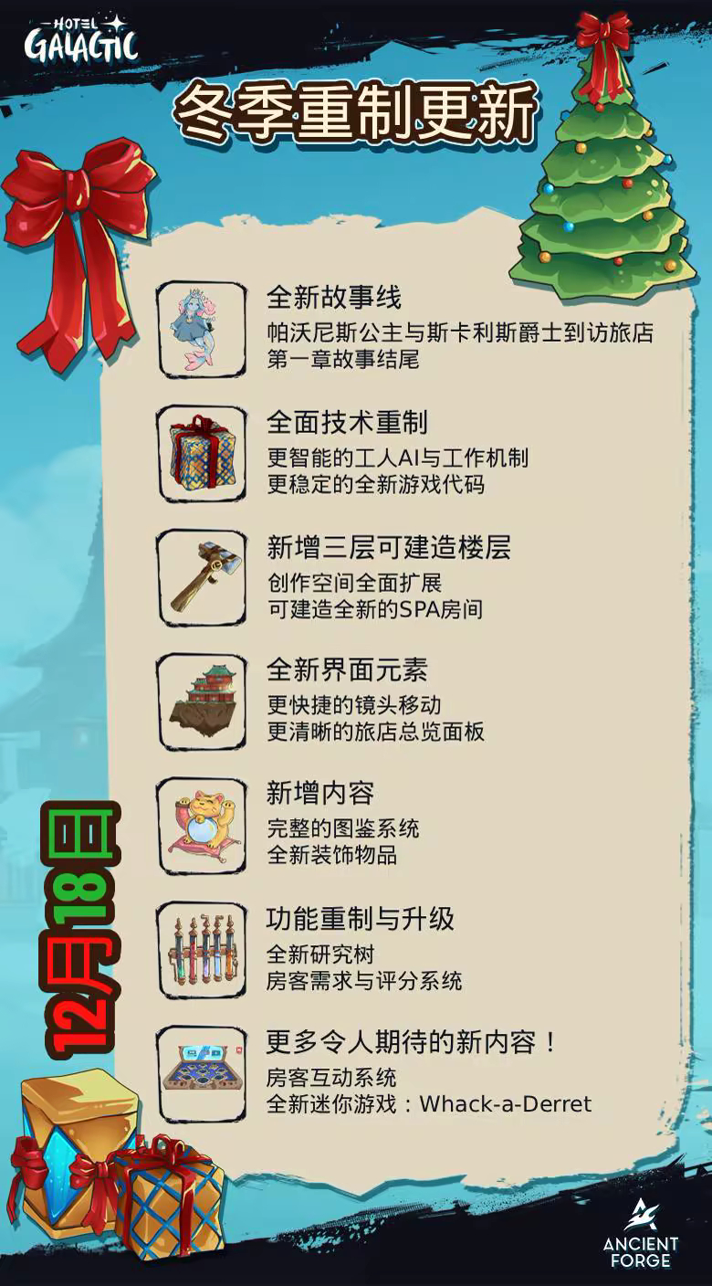 在幽靈古斯塔夫的引導下,您將揭開他悲傷過往的謎團,幫助他尋找內心的救贖。他在失去的愛與復仇的渴望之間徘徊,而他的故事將與您的旅棧重建之旅交織在一起。然而,隨著旅棧的發展,強大的銀河和平部隊(Galactic Peace Corps)也在暗中監視您的決策,隨時準備對您的經營方式做出反應。您所選擇的道路將影響員工、旅客,甚至古斯塔夫本人的命運,編織出一段關於羈絆、成長與救贖的動人故事。