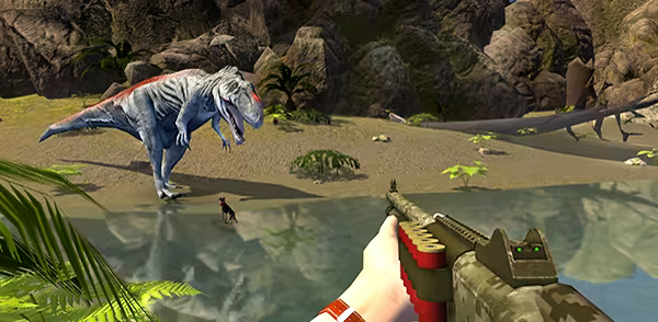 What could be better than wandering through prehistoric world prairies and hunting the most dangerous prey? Of course, there are only the best hunting weapons. A specially trained dog will spot a prey easily.
