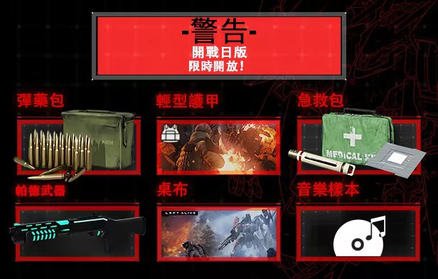 LEFT ALIVE 開戰日版將開放限時預購,還包含以下額外內容: