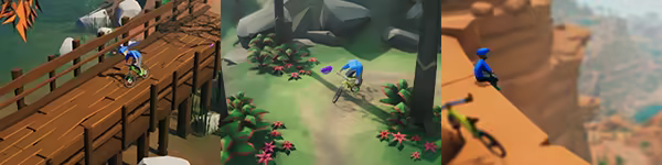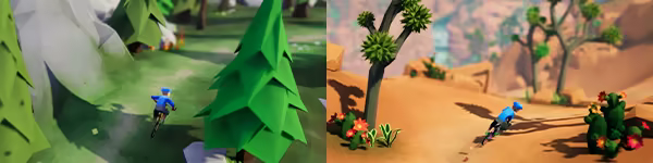 Explore the rich mountain worlds at your own pace or face the ticking clock. Each mountain features several trails - ride along quiet mountain lakes, majestic forests and steep canyons. A custom physics system lets you carefully drop from boulder to boulder, sprint over abysses or slide through muddy grounds.