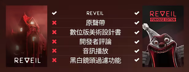 - 黑白鏡頭過濾功能:在遊戲中使用這項功能,營造出復古的驚悚氛圍。