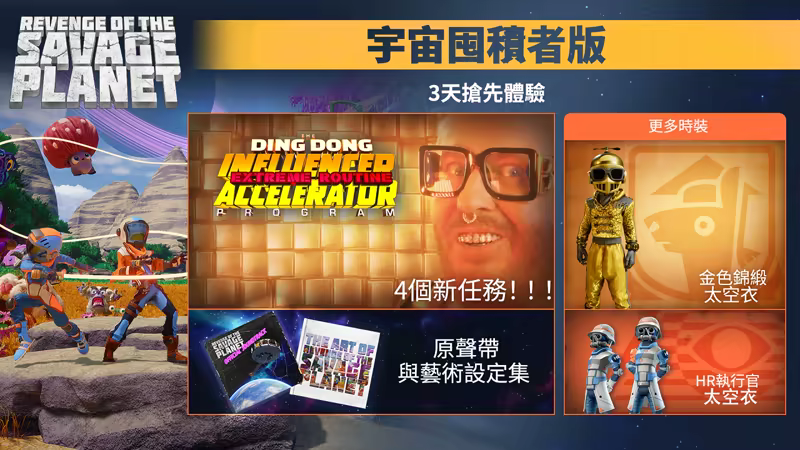 四個龐大而充滿生機的星球,每個星球都有自己獨特的植物和生物。掃描一切,記錄一切,完成各種實驗提升科研等級(science level)……這可是解鎖更多精彩裝備的關鍵!而且……說不定還不止有四個星球哦!誰知道呢?