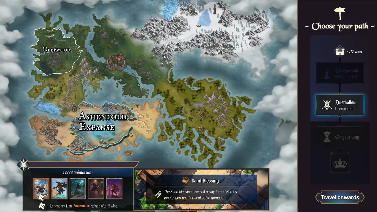 Explore a world map filled with bits of lore and opportunities to unlock new allies, uncover powerful weapons, and expand the pool of cards available in your loot.