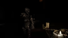 A deformed creature lurks in an abandoned mansion.Fear of confronting the enemy in an enclosed space.