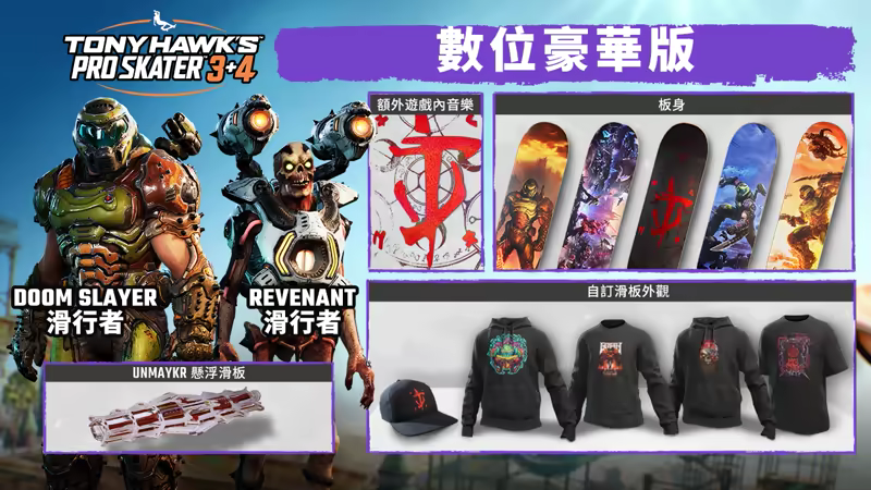 專屬的 Doom Slayer、Revenant 和「建立滑板手」(Create-A-Skater) 滑板板身