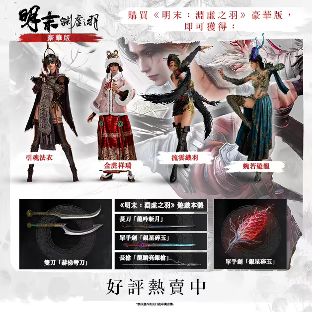 《明末:淵虛之羽》是一款類魂動作RPG,故事發生在明末黑暗動盪的蜀地,各方軍閥混戰,更有神秘疾病催生可怖怪物。