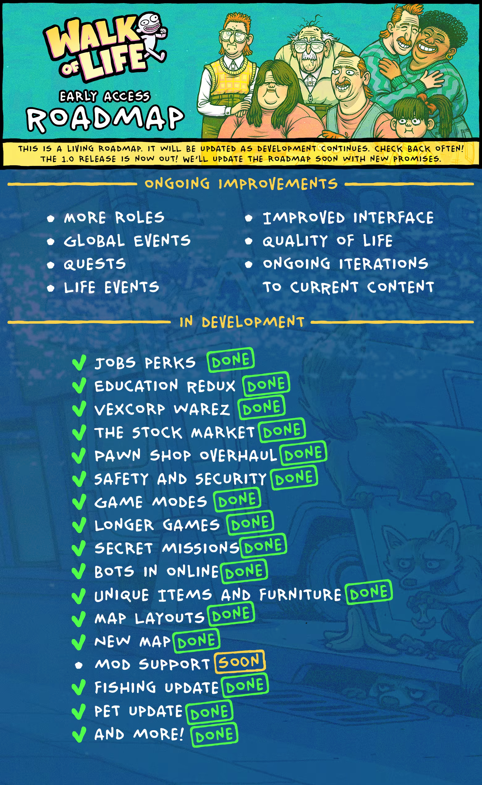 Walk of Life is the ultimate competitive life simulator! Play with up to six players and do whatever it takes to make it to the top! Dive headfirst into the rat race and crush your friends (or our stupid bot players!) in Walk of Life!
